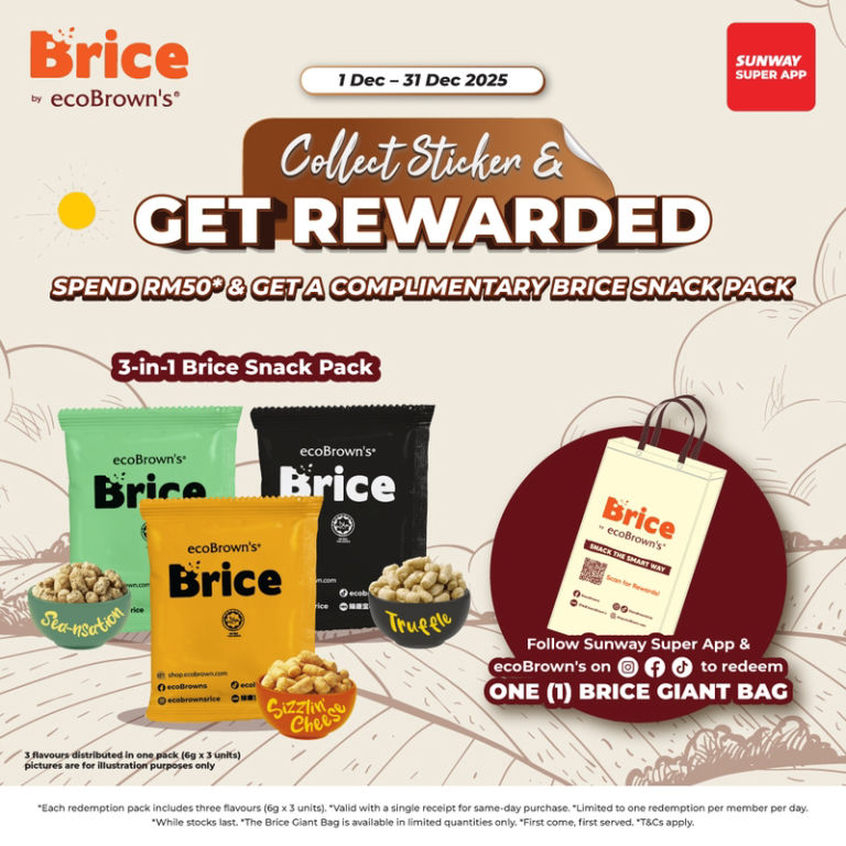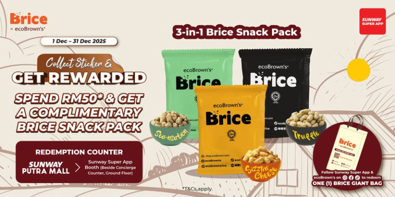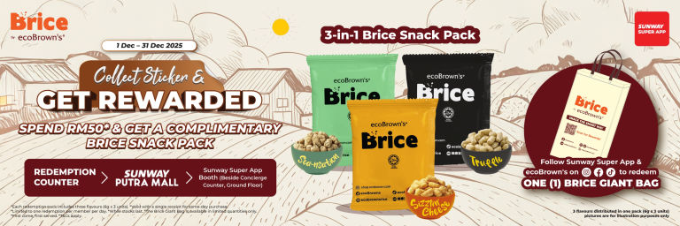 Redeem a complimentary Brice Snack Pack when you spend a minimum of RM50* at Sunway Putra Mall! …