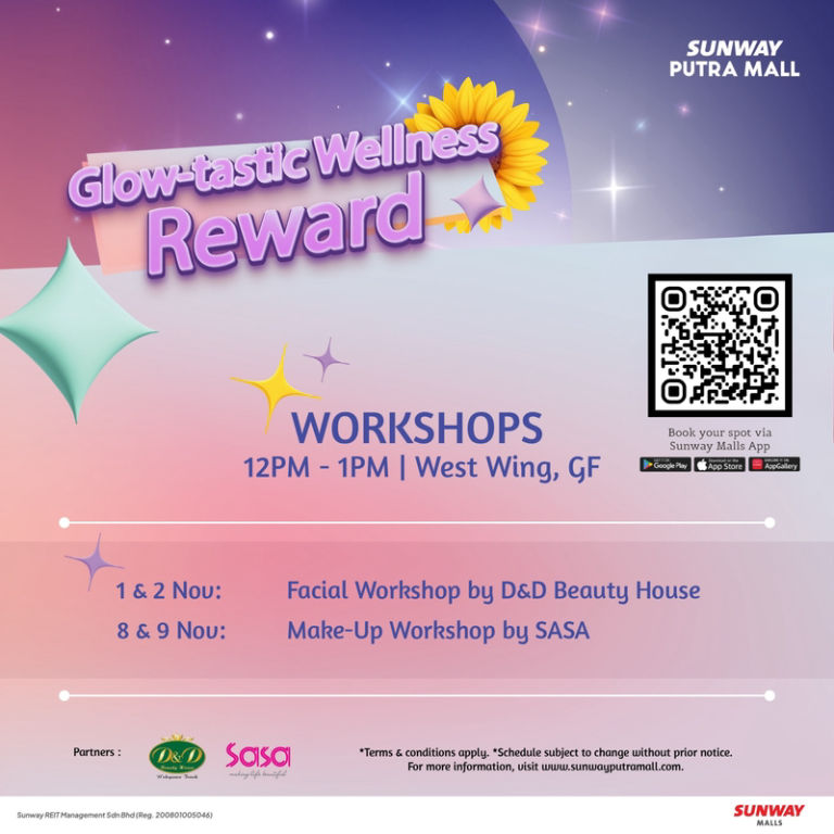Join our Glow-tastic Wellness Workshops this November at Sunway Putra Mall and learn the secrets to radiant skin and flawless beauty! 💄💅
