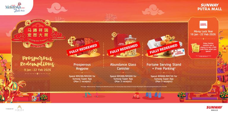 From 16 January – 22 February 2026, enjoy the Mǎ-ny Luck Year by Sunway Super App and stand a chance to win lucky draw entry for a 999 Gold Plate!!