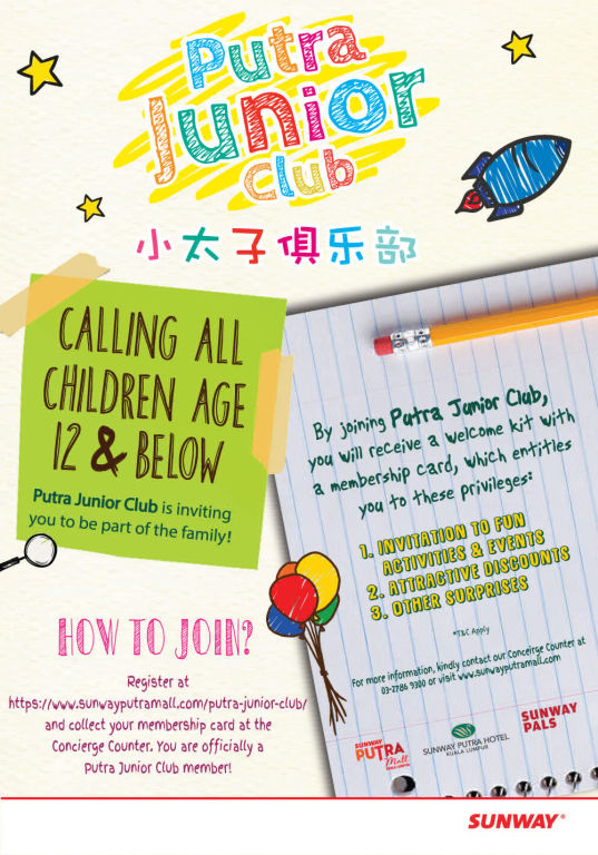 - Get an exclusive FREE gift when you Sign-up as Putra Junior Club member