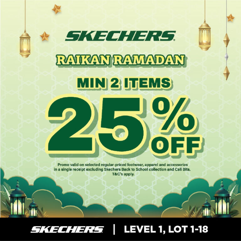🌙 Raya Ready with Skechers! ✨ Enjoy 25% OFF on selected regular-priced footwear, apparel, and ac…