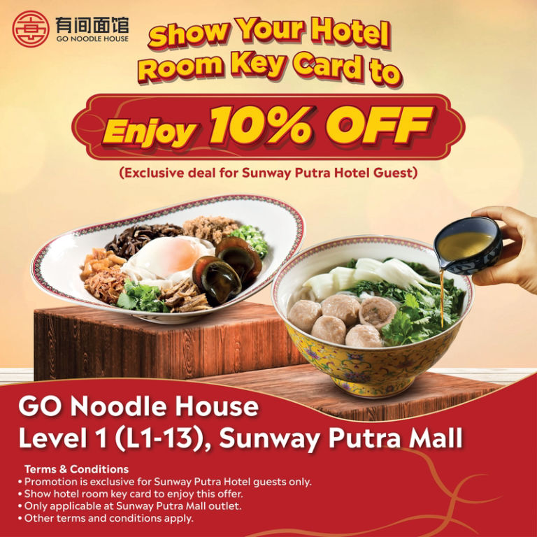 Show your hotel room keycard and be entitled to 10% off total bill with minimum purchase of RM60 on ala carte menu (exclude service tax and SST).
